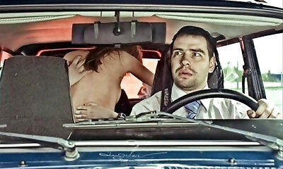 Ardent slender Russian sweetie gets her head pushed hard while she gives a blowjob in MMF
