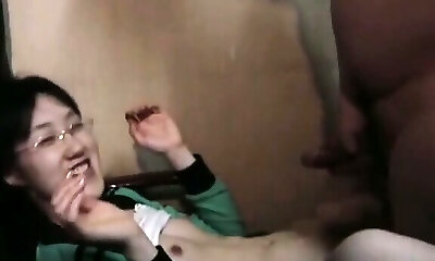 Brunette Japanese Teen with small Melons in her very first Rough Deepthroat Porn