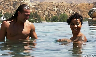 super salope, aidra fox est en train de baiser un mec noir fou, à côté de la piscine