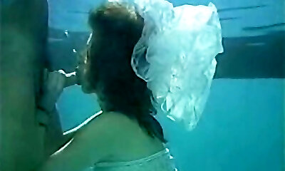 tête cramoisi sale méga-salope suce la bite sous l'eau dans la piscine