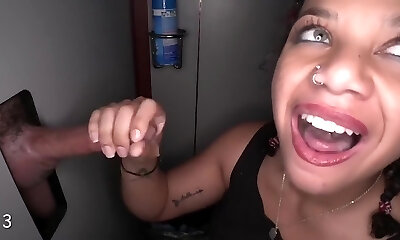Beautiful woman JoJo Kiss sucking BBC through gloryhole
