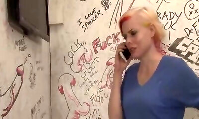 Huge black dick butt fucks this succulent blonde dame at a gloryhole