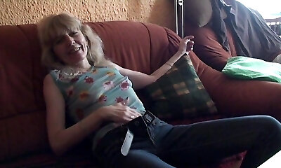 Booty mature blond fucks her hairy pussy