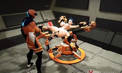 lady with big tits gets fucked by a machine
