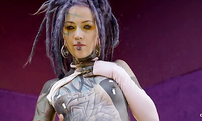 Tattoos and drilling with big tit blonde Evilyn Ink