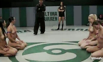 Three horny lesbians try wrestling catfight