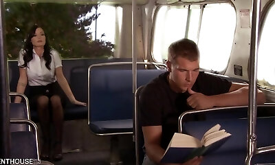 角质生动的黑发无法抗拒和接近一个帅哥在公共交通工具