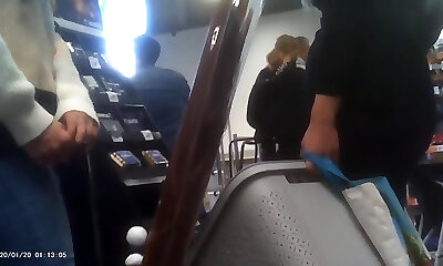 Displaying his cock at the book store