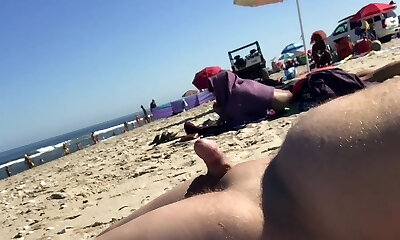Turned on amateur weirdo keeps jerking himself on the public beach