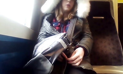 Depraved tranny likes to flash her private parts on public transportation