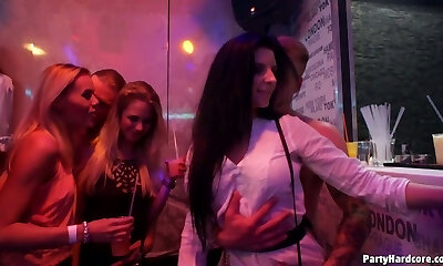 les salopes de la fête s'amusent en baisant en plein milieu de la boîte de nuit