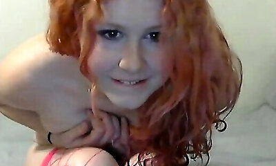 une rousse envoûtante à la peau pâle chérie sans soutien-gorge suce le bouton