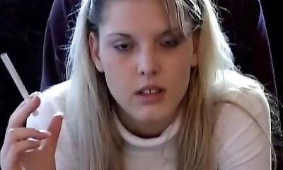 en état d'ébriété blondie sucer la bite tout en fumant une ciggie
