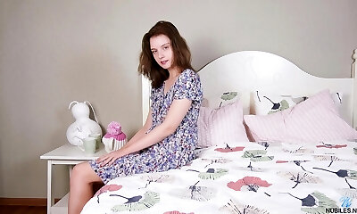 Sexy brown-haired Noa Taves takes off her black panties to masturbate