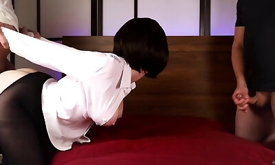 японская молоденькая трахает своего отчима-рогоносца, пока он наблюдает за ней
