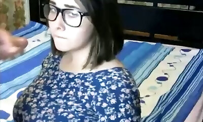 великолепный колледж телка в умопомрачительных очках дает голову на диване