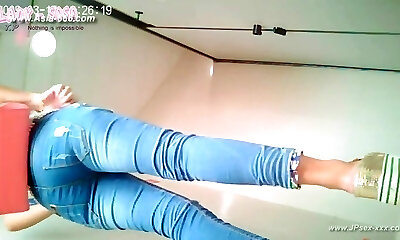 прелестная бледнокожая попка молодой цыпочки в общественном туалете