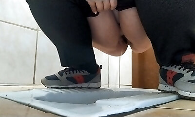темноволосая пышная молочная куколка писает в общественном пляжном туалете гостевой комнаты