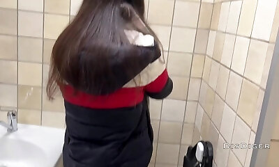рискованная публика изучает секс-игрушку в супермаркете и кончает в челюсти в общественном туалете