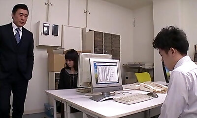 Quickie fucking in the office with a diminutive tits Asian assistant
