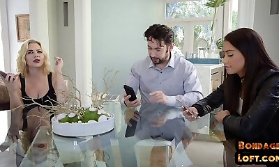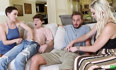 Group hump on the sofa with swinger wives Maya Kendrick and Dee Williams
