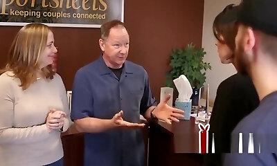Swinger wives getting fucked by another guy in front of her cuck husband at a porno set