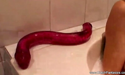 She had to wash a dildo but finished up playing with all of her holes