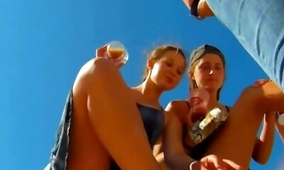 dark haired teen upskirt at beach